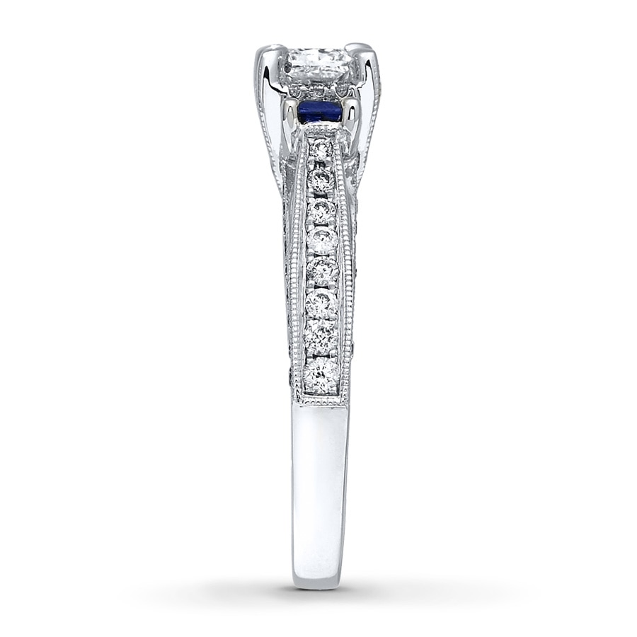 Garnet, Blue Sapphire and 1/15 CT. T.W. Diamond Symbol Ring in Sterling Silver